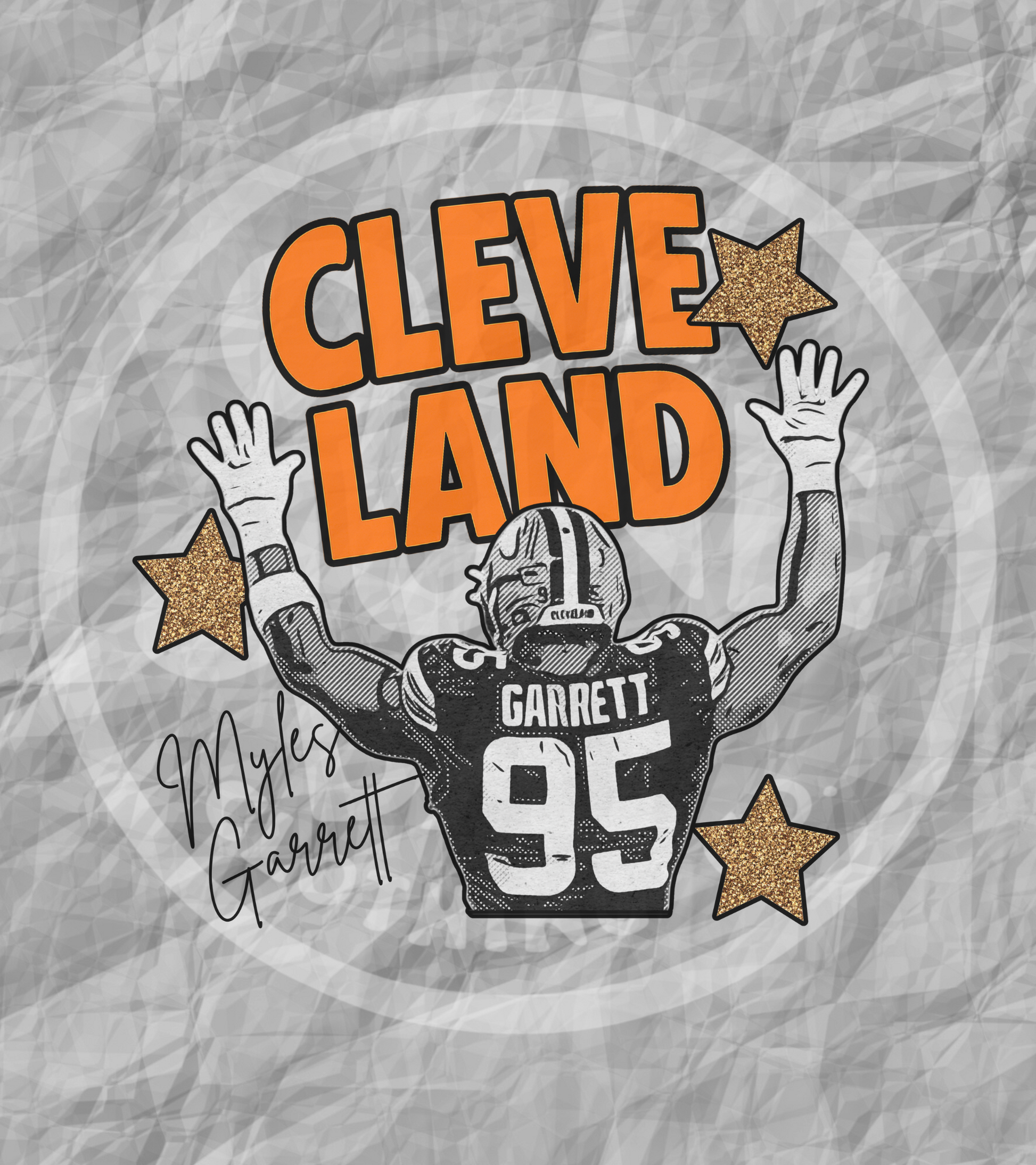 Celebrate Cleveland with this vibrant orange and brown design featuring Garrett, hand-drawn details, and glitter stars. Great for DIY fan gear or wall art. Instant download – digital file only.