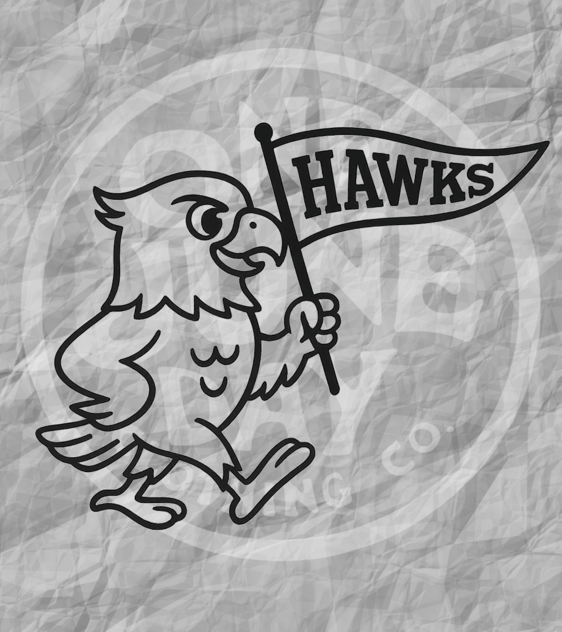 Retro hawks mascot design holding pennant flag. Great for school pride shirts, team gear, or DIY projects. Instant download PNG.