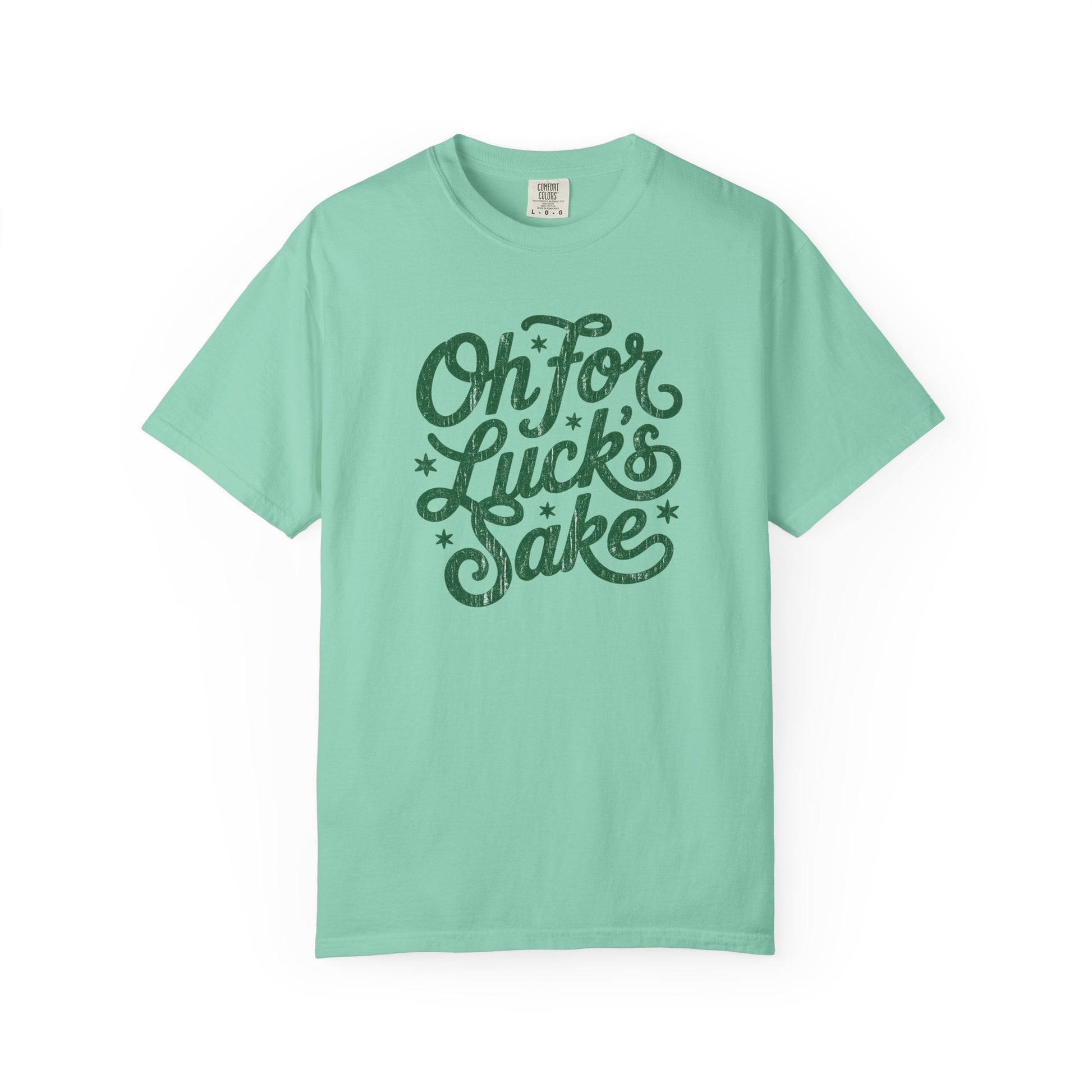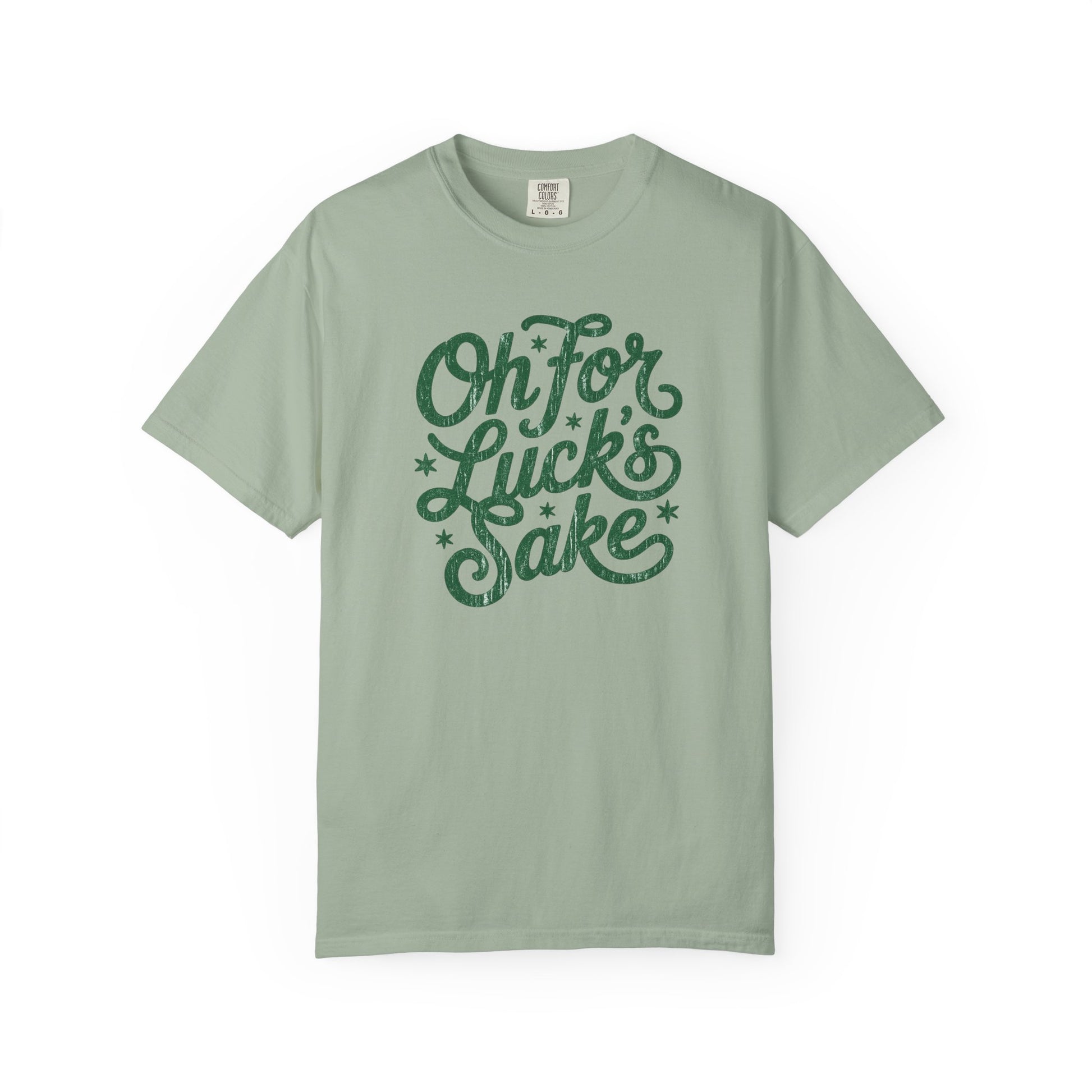 Soft, lived-in tee with a playful, hand-lettered front that reads “Oh For Luck’s Sake.” The garment-dyed cotton gives the shirt a vintage, muted wash and a gentle texture that only gets better with wear. Its relaxed fit and heavyweight knit feel sturdy without being stiff — the kind of shirt you reach for on slow mornings, backyard barbecues, or when you want to make folks smile without saying a word. Subtle star accents in the print add a touch of whimsy, while the sewn-in label and double-needle stitching promise a durable, comfortable piece that becomes part of your regular rotation.