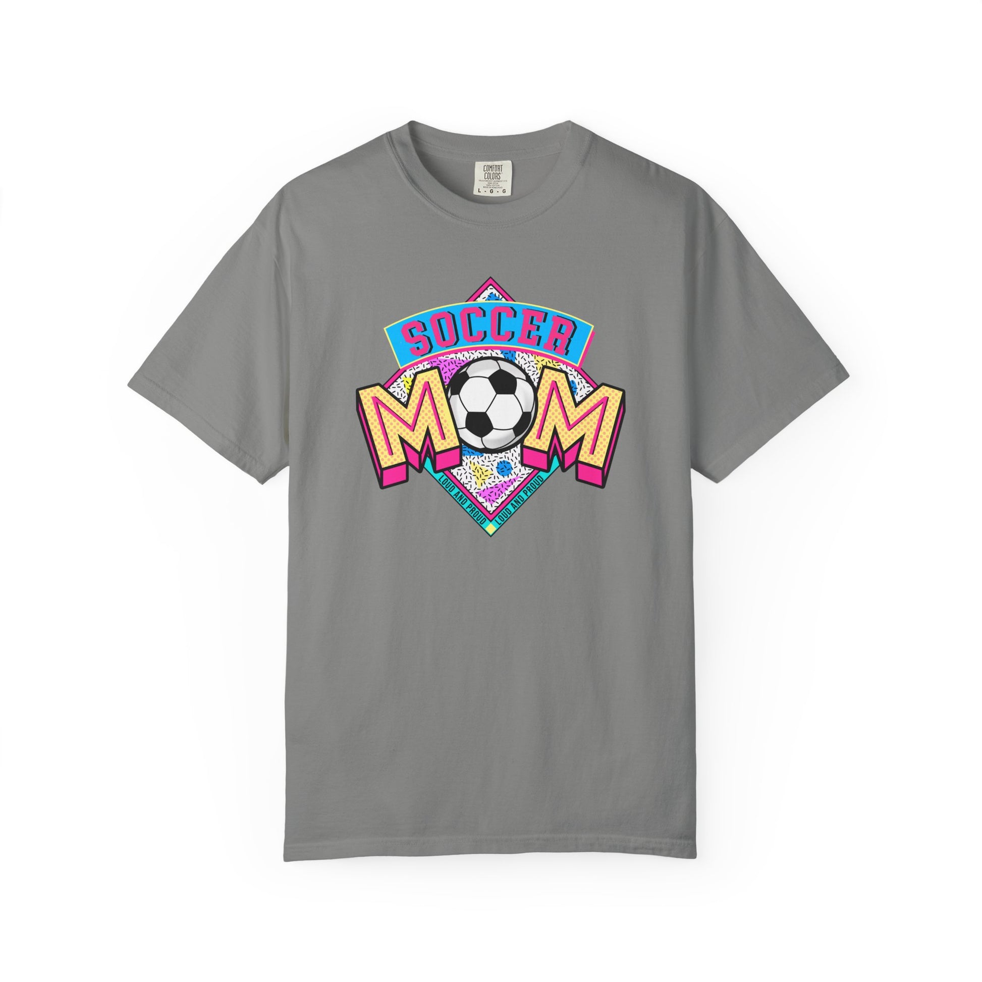 Soft, lived-in tee built for sideline energy and everyday wear. This heavyweight, garment-dyed cotton shirt feels broken-in from day one, with a relaxed fit that lets you move from cheering on the field to grabbing coffee without changing. The bold, colorful “Soccer Mom” crest puts the sport front and center — a playful emblem that reads like a badge of honor after early practices, weekend tournaments, and rainy-day scrimmages. Subtle texture from the post-construction dyeing and neat double-needle seams give it a handcrafted, durable feel that ages beautifully. Offered in a wide range of colors and sizes, it’s for anyone who spends afternoons tracking plays, folding kits, and celebrating every goal with equal enthusiasm.